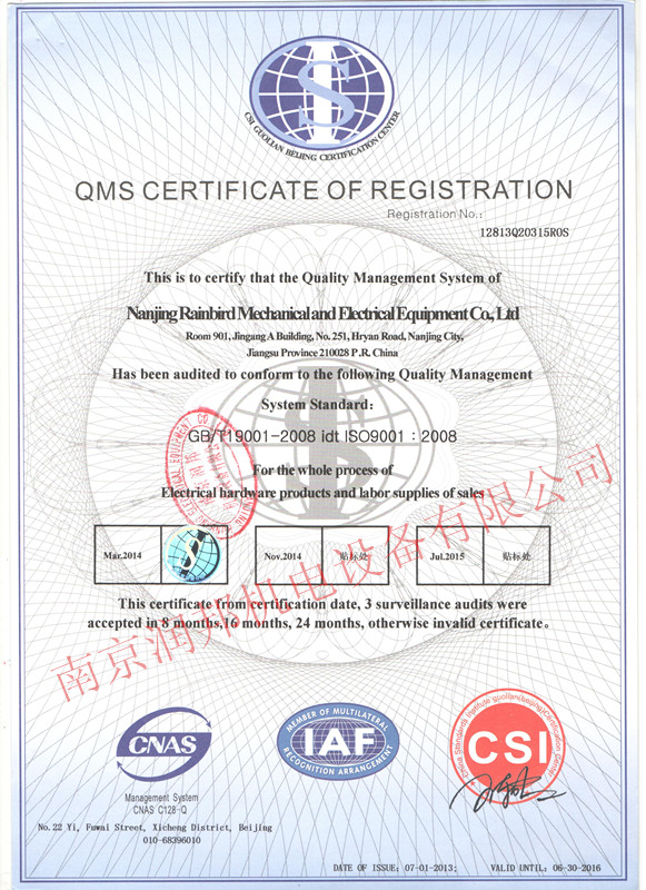 2014年6月16日,我公司順利通過ISO9001質(zhì)量管理體系認(rèn)證第二年度監(jiān)督審核
